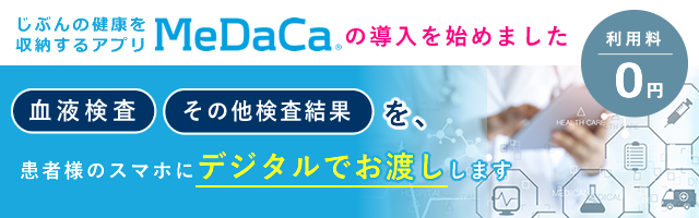 2024年9月よりスマホアプリ「MeDaCa」で血液検査の受け取りができるようになりました。