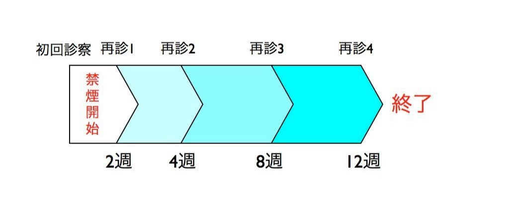 初診時に、喫煙状況をから禁煙治療について判断し、保険診療が適応するか判定します。 保険診療の場合は、12週間にわたり合計5回の診察を行い、呼気一酸化炭素濃度の測定、禁煙補助薬の処方を 行います。